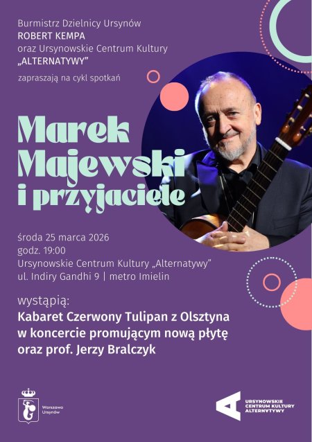 Kolejny koncert w ramach cyklu spotkań z Markiem Majewskim – satyrykiem, kompozytorem, śpiewającym poetą, scenarzystą i reżyserem licznych programów estradowych, telewizyjnych oraz radiowych. Goście spotkania: Kabaret Czerwony Tulipan z Olsztyna w koncercie promującym nową płytę oraz prof. Jerzy Bralczyk.