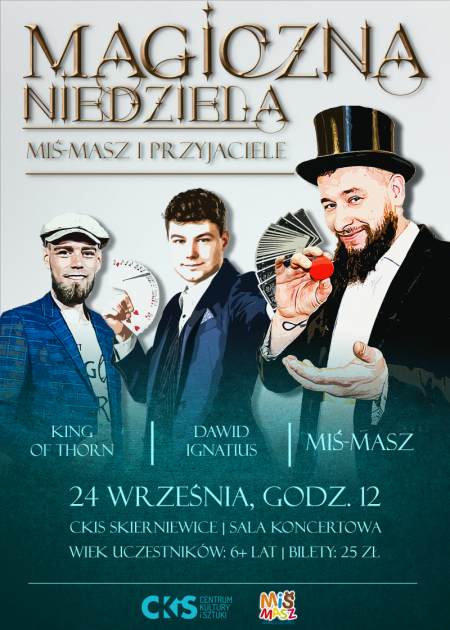 Miś Masz dał nam się już poznać ze swojej magicznej strony, ale teraz wystąpi na scenie razem ze swoimi przyjaciółmi również iluzjonistami, którzy przyjadą prosto z Torunia.