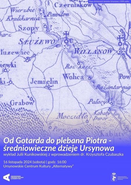 Średniowiecze wcale nie musi być nudne! Kim był Andrzej Ciołek i po co w 1404 roku udał się do Hiszpanii? Co łączy dzisiejszy Ursynów z Czerwińskiem, a Jemielin z Wyczółkami? Kim był Gotard i gdzie rządził? Gdzie była Wola Służewska, a gdzie Wola Służewiecka? Kto ukradł część uposażenia najstarszej parafii dzisiejszego Ursynowa – parafii służewskiej? Przyjdźcie na wykład, a poznacie odpowiedzi na te i wiele innych intrygujących pytań.