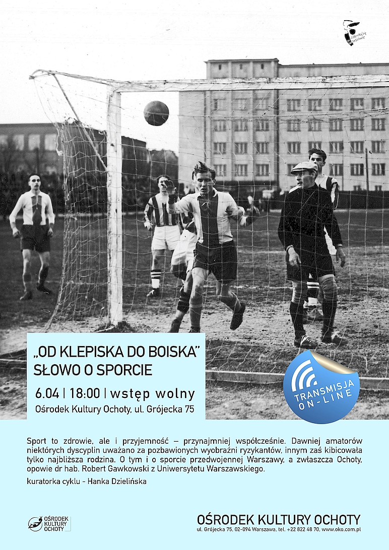 Sport to zdrowie, ale i przyjemność – przynajmniej współcześnie. Dawniej amatorów niektórych dyscyplin uważano za pozbawionych wyobraźni ryzykantów, innym zaś kibicowała tylko najbliższa rodzina. O tym i o sporcie przedwojennej Warszawy, a zwłaszcza Ochoty, opowie dr hab. Robert Gawkowski z Uniwersytetu Warszawskiego.=
