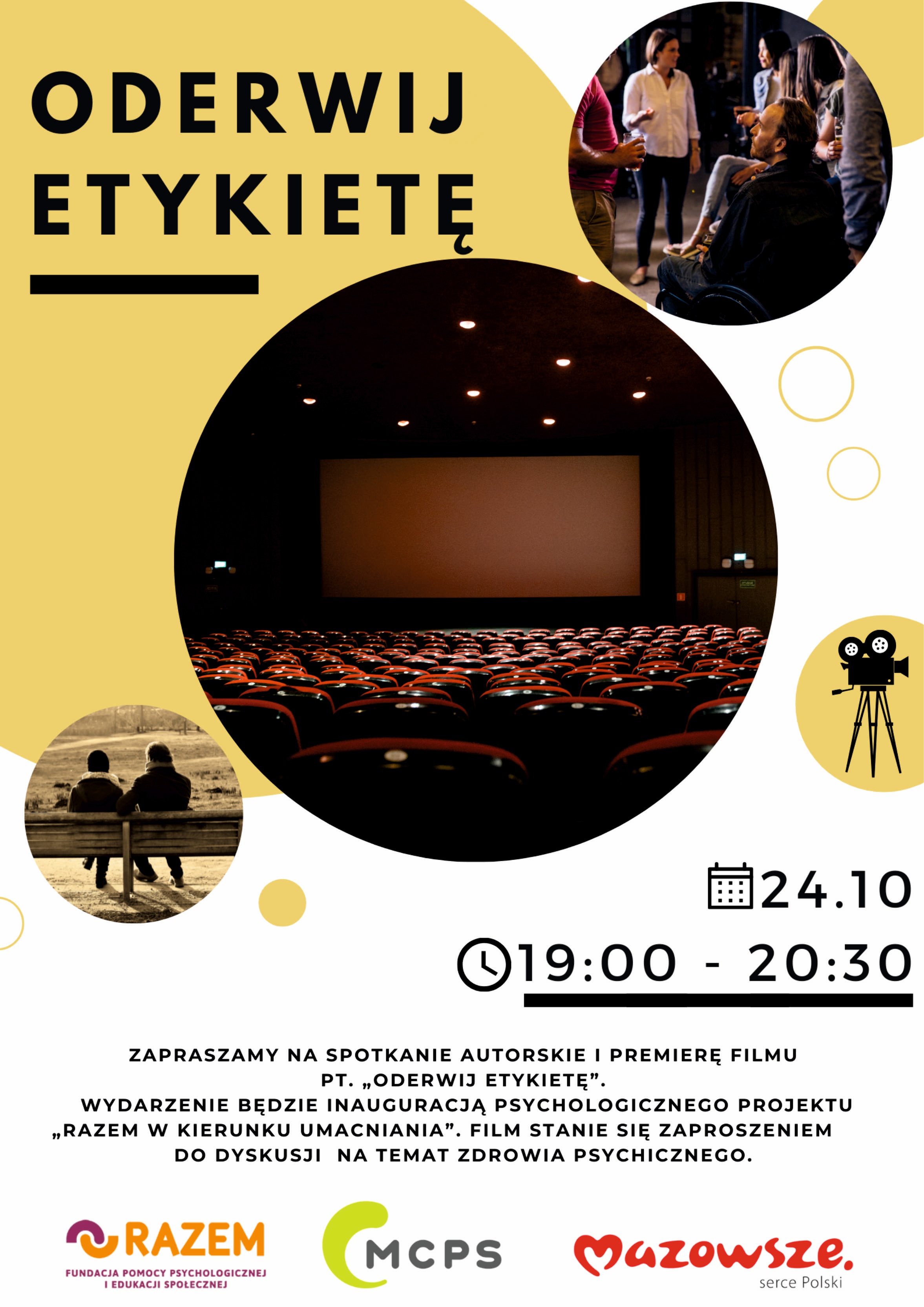 Spotkanie autorskie i premiera filmu pt. „Oderwij etykietę” - Fundacja Pomocy Psychologicznej i Edukacji Społecznej RAZEM. Wydarzenie inaugurujące projekt psychologiczny „Razem w kierunku umacniania”. Film stanie się zaproszeniem do dyskusji na temat zdrowia psychicznego.