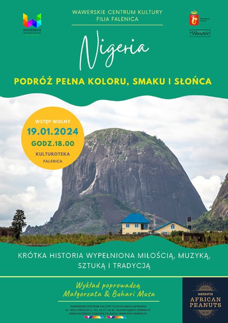 Serdecznie zapraszamy na opowieści o Nigerii (pokaz slajdów). To podróż pełna koloru, smaku i słońca . Historia wypełniona miłością, muzyką, sztuką i tradycją . Wieczór poprowadzą Małgorzata i Buhari Musa.