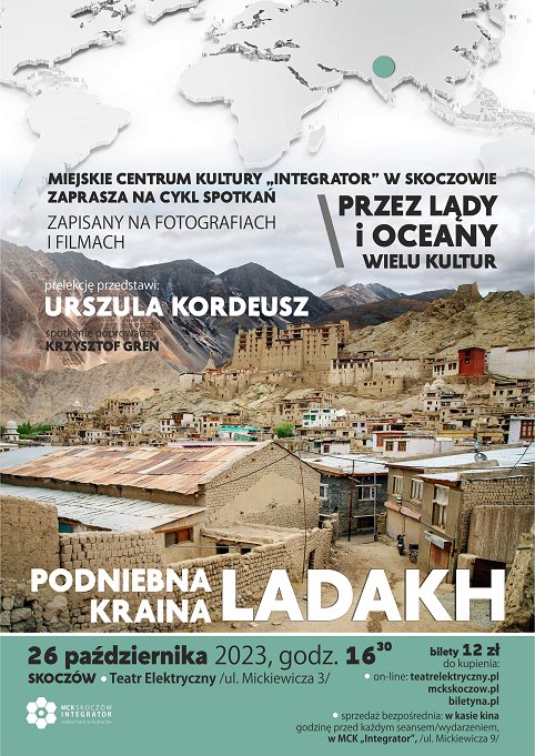 Miejskie Centrum Kultury "Integrator" w Skoczowie zaprasza na kolejną edycję cyklu prelekcji podróżniczych pod nazwą "Przez lądy i oceany wielu kultur". 26.10.2023 r. spotkanie z Urszulą Kordeusz pt. Podniebna kraina - LADAKH.