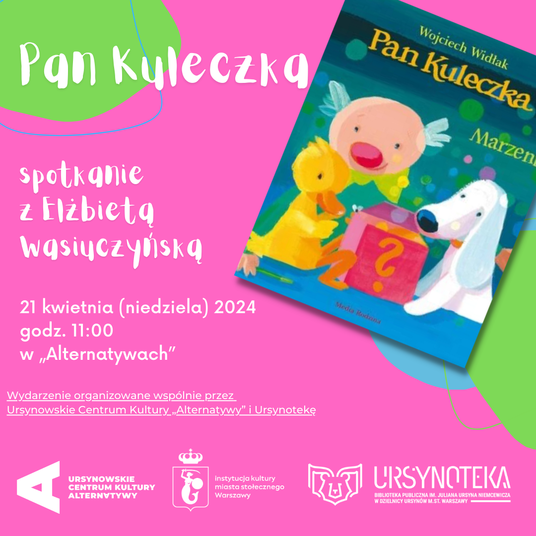 Pana Kuleczkę chciałby znać każdy. Zapewnia bezpieczeństwo i dyskretnie towarzyszy zabawie. Jest tolerancyjny, ale uczy poszanowania reguł. Zawsze można liczyć na jego wybaczający uśmiech. Ten idealny dorosły jest bohaterem serii książek ilustrowanych przez Elżbietę Wasiuczyńską. Podczas spotkania poznamy nie tylko Pana Kuleczkę, ale także jego podopiecznych – kaczkę Katastrofę, psa Pypcia i muchę Bzyk-Bzyk.