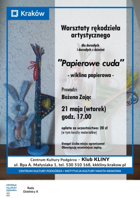 „Papierowe cuda” - warsztaty rękodzieła artystycznego. Prowadzi Bożena Zając.