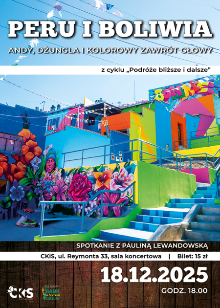 „Podróże bliższe i dalsze” spotkanie z Pauliną Lewandowską „Peru i Boliwia - Andy, dżungla i kolorowy zawrót głowy”