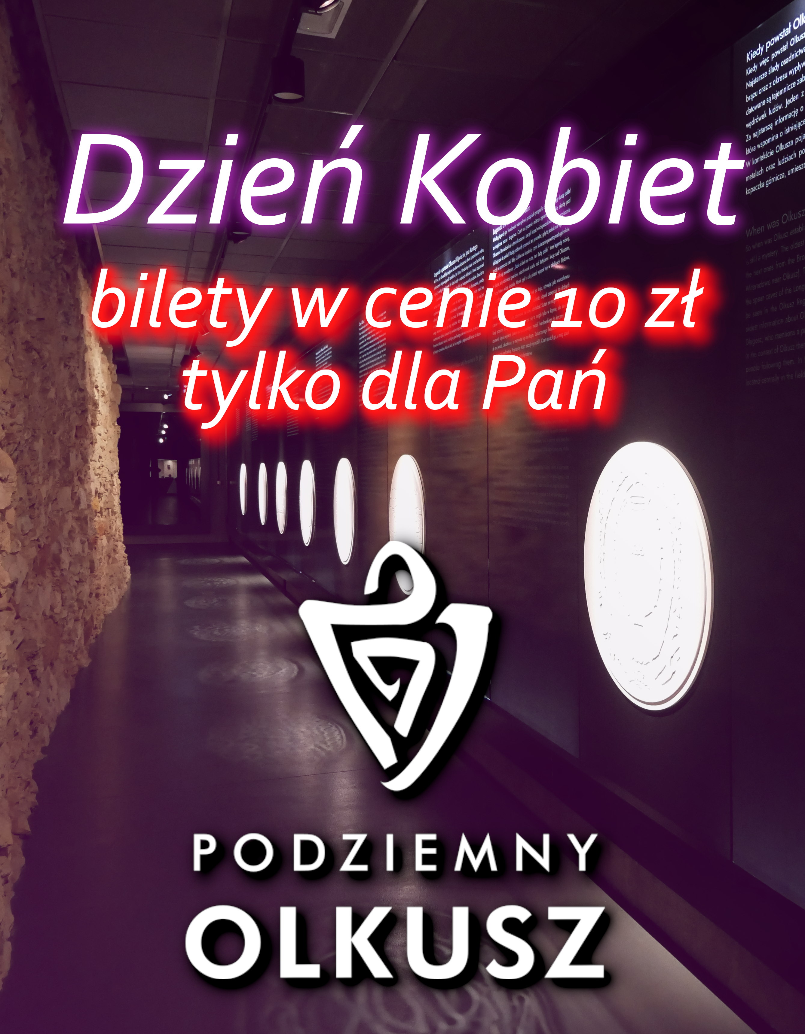 � Oferowana promocja obowiązuje tylko Panie i obejmuje możliwość zwiedzenia ekspozycji Podziemny Olkusz w godzinach od 9:00 do 18:00.