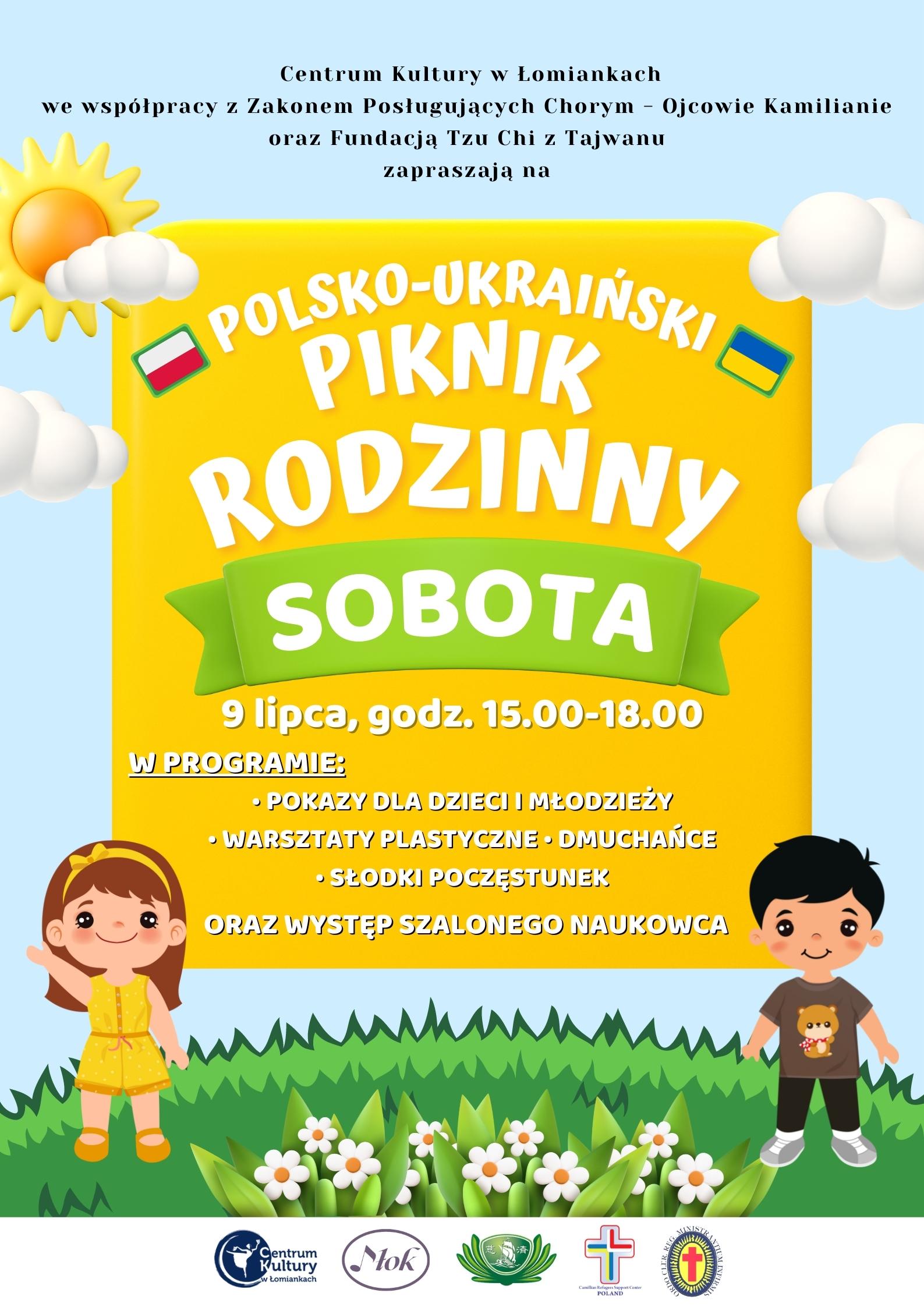 Centrum Kultury w Łomiankach we współpracy z Zakonem Posługujących Chorym - Ojcowie Kamilianie oraz Fundacją Tzu Chi z Tajwanu zapraszają na "Polsko-ukraiński piknik rodzinny".