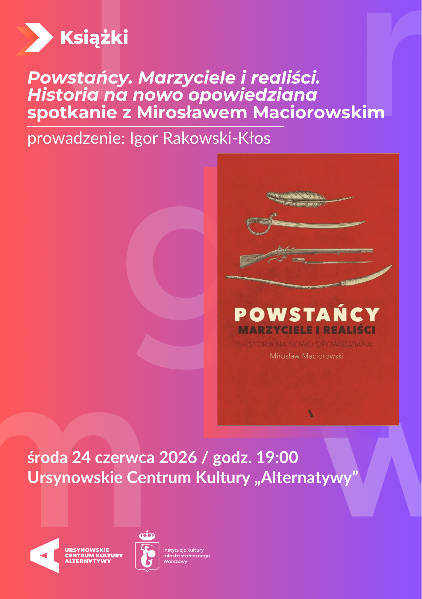 Spotkanie poświęcone najnowszej książce Mirosława Maciorowskiego o polskich zrywach narodowych i drodze do niepodległości. To opowieść o wydarzeniach, które ukształtowały naszą tożsamość oraz sposób myślenia o patriotyzmie, widziana przez pryzmat rozmów z wybitnymi historykami i historyczkami. Autor