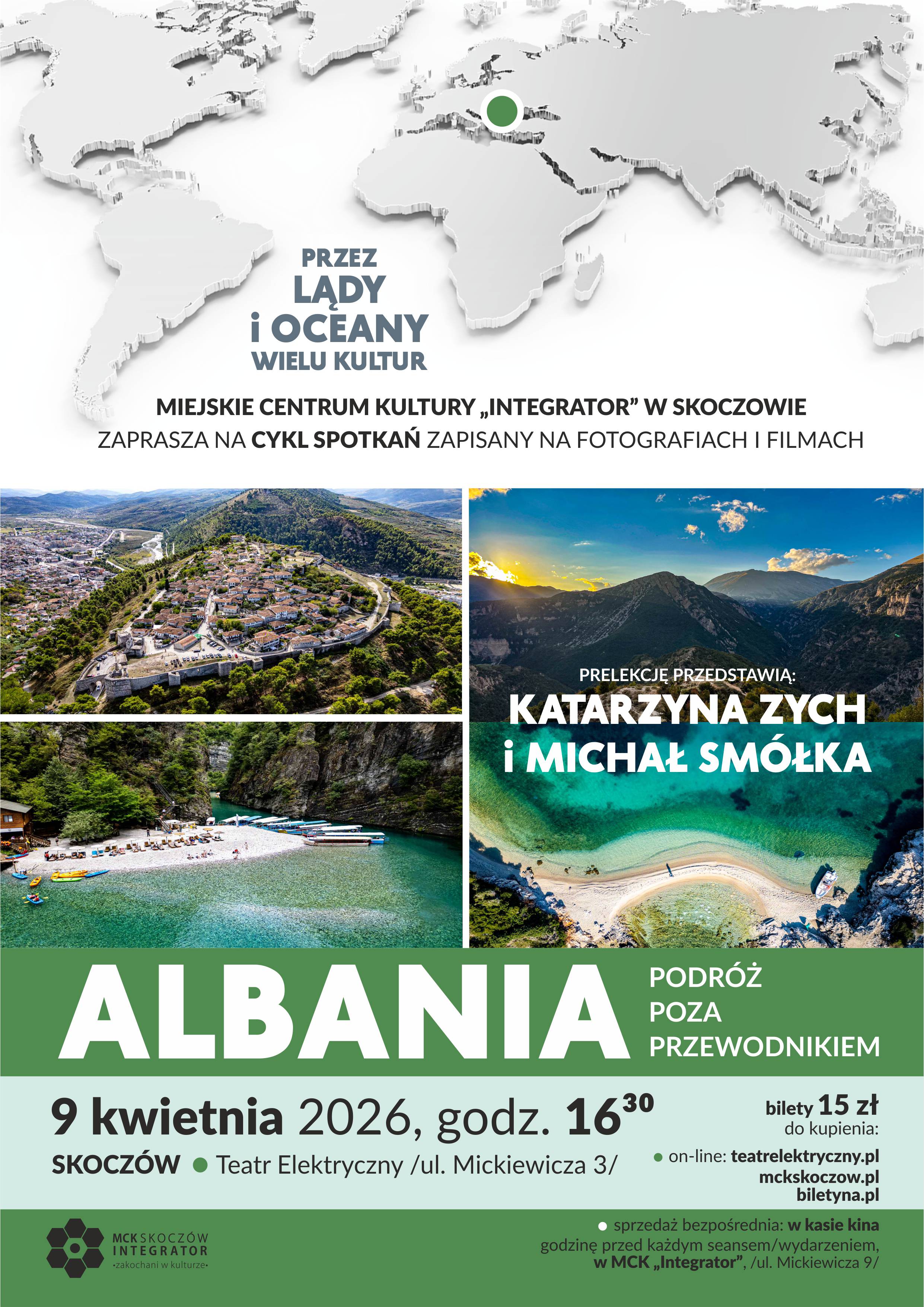 Miejskie Centrum Kultury INTEGRATOR w Skoczowie zaprasza na kolejną prelekcję w ramach cyklu Przez lądy i ocenay wielu kultur, która odbędzie się w Teatrze Elektrycznym w Skoczowie.