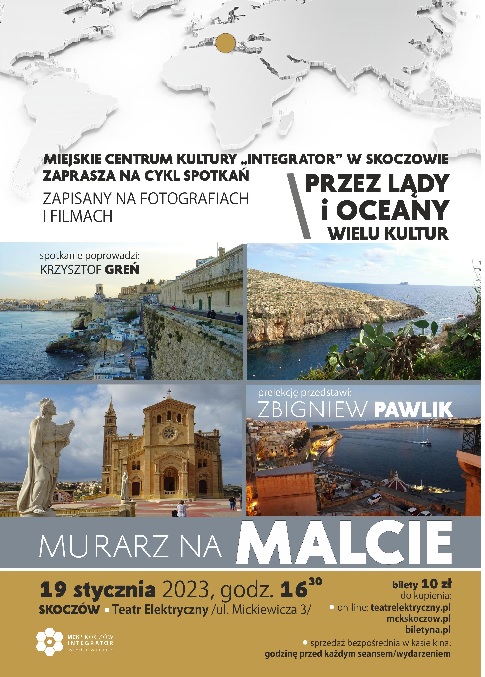 Miejskie Centrum Kultury "Integrator" w Skoczowie zaprasza na kolejny odcinek z cyklu "Przez lądy i oceany wielu kultur". Zbigniew Pawlik poprowadzi prelekcję pod tytułem "Murarz na Malcie".