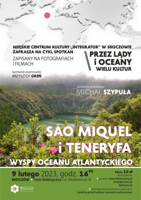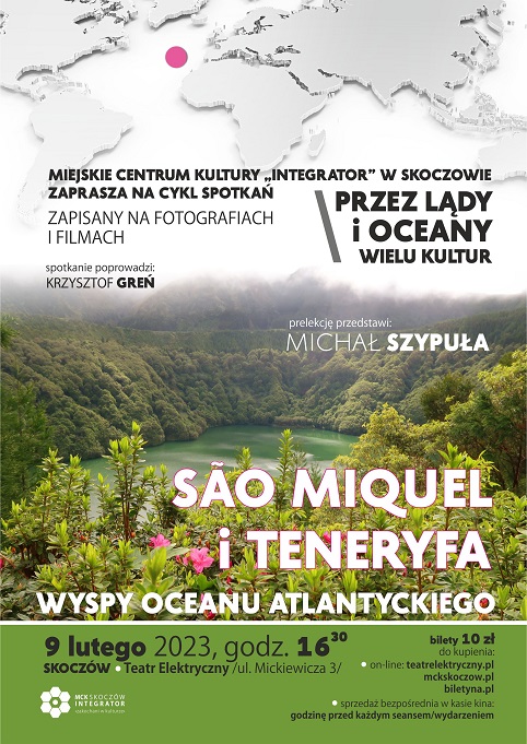 Miejskie Centrum Kultury "Integrator" w Skoczowie zaprasza na kolejny odcinek z cyklu "Przez lądy i oceany wielu kultur". Michał Szypuła przedstawi prelekcję pod tytułem: Wyspy Oceanu Atlantyckiego - São Miguel i Teneryfa.