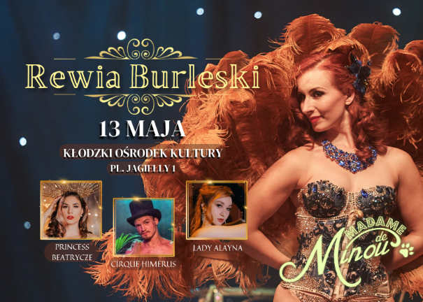 Madame de Minou – Burlesque Artist - gospodyni wieczoru, która może tu napisać o sobie wiele, ale zaraz ma dentystę i się spieszy, więc żeby ją poznać musisz wpaść na jej show.