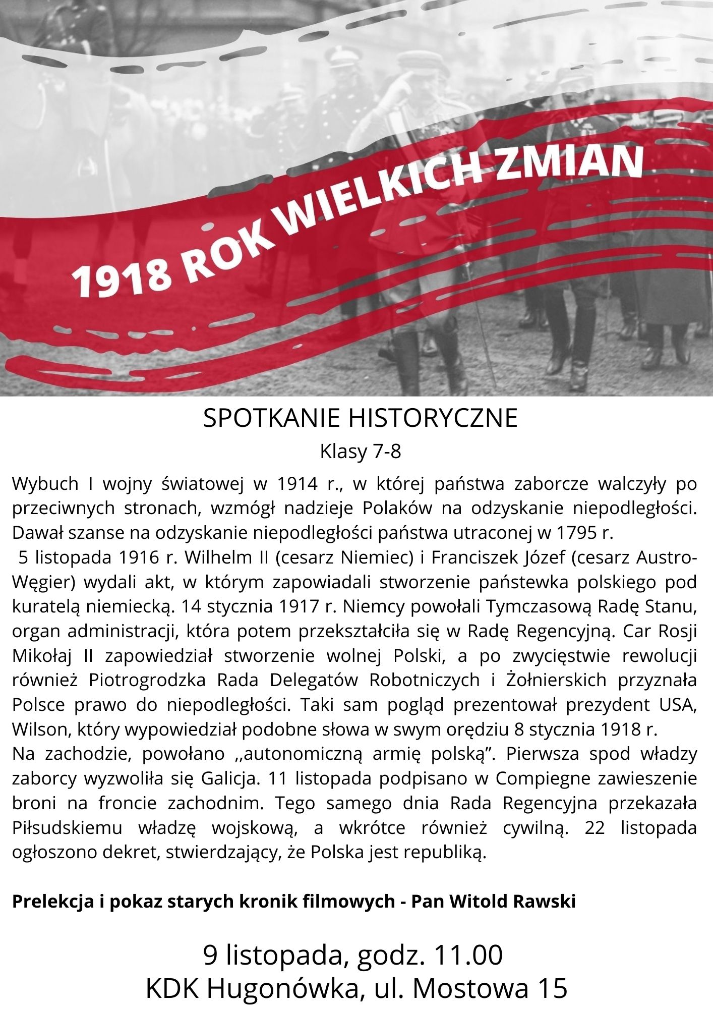 Rok 1918. Rok wielkich zmian klasy 7-8 godzina 11:00