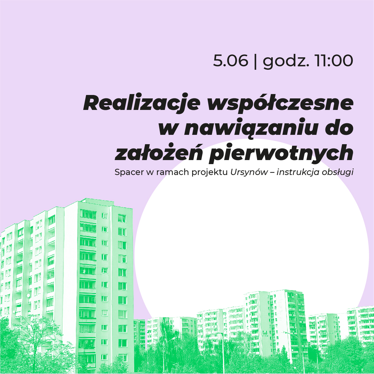 Zielone osiedle, w którym rzeźba architektury podąża za ukształtowaniem terenu, bloki ustawione tak, by tworzyły kameralne i przyjazne dziedzińce, dostęp do ogródków z parterów, duże balkony i doświetlone mieszkania. Dostęp pieszy do szkoły, sklepu, poczty. Dla ursynowskich projektantów, podstawową ideą przy pracy nad kształtem osiedla, była ludzka skala. Mimo technologicznych i materiałowych braków, które przesądziły o miernej jakości wykończeń, ten ideał udało się osiągnąć. W jaki sposób współczesne biura projektowe podejmujące się zleceń na Ursynowie nawiązują do tego etosu? Podczas spaceru poszukamy przykładów i dotrzemy do autorów realizacji ostatniej dekady.
