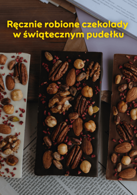 Co może wyjść z połączenia czekolady, słodkich dodatków i wyobraźni? Najlepsze ręcznie robione czekolady! Na warsztatach przygotujecie słodką tabliczkę według Waszego autorskiego pomysłu. Ale to nie wszystko! Dostaniecie od nas specjalne pudełko, które możecie własnoręcznie ozdobić i nadać mu świąteczny nastrój lub po prostu napisać dedykację. Tak zapakowana czekolada to na pewno wspaniały świąteczny prezent, który rozczuli każdego domownika.