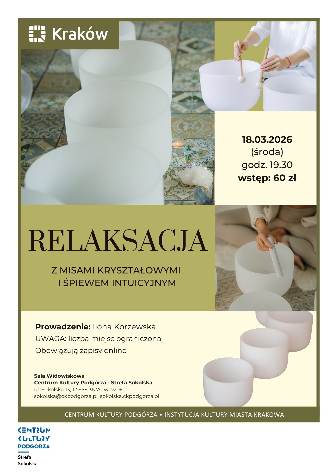 Relaksacja w dźwiękach mis kryształowych i śpiewu intuicyjnego 18.03.2026