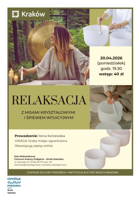Relaksacja w dźwiękach mis kryształowych i śpiewu intuicyjnego - 20.04.2026