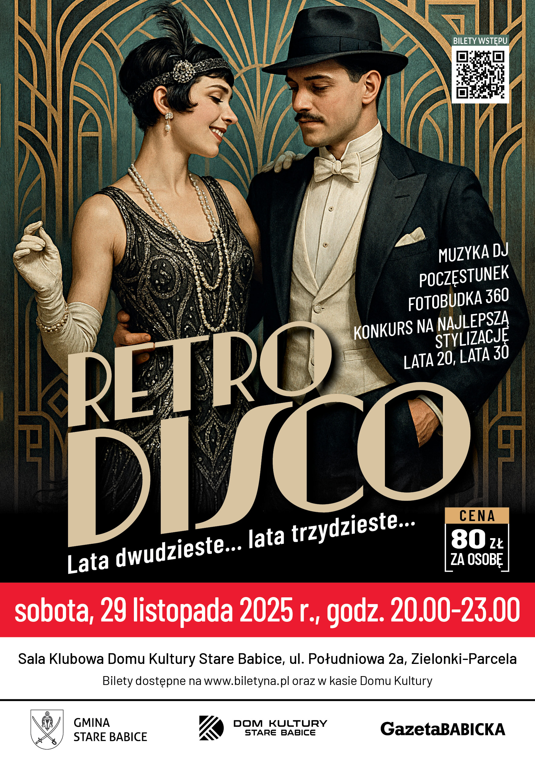 Z okazji Andrzejek proponujemy niepowtarzalne RETRO DISCO w klimacie lat 20tych, 30tych w Sali Klubowej Domu Kultury Stare Babice.