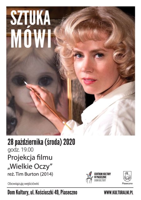 „Wielkie oczy” to biograficzna opowieść o Margaret Keane, amerykańskiej malarce, która zasłynęła pop-artowymi obrazami przedstawiającymi dzieci o wielkich oczach. W rolach głównych: Amy Adams, Christoph Waltz, Danny Huston.