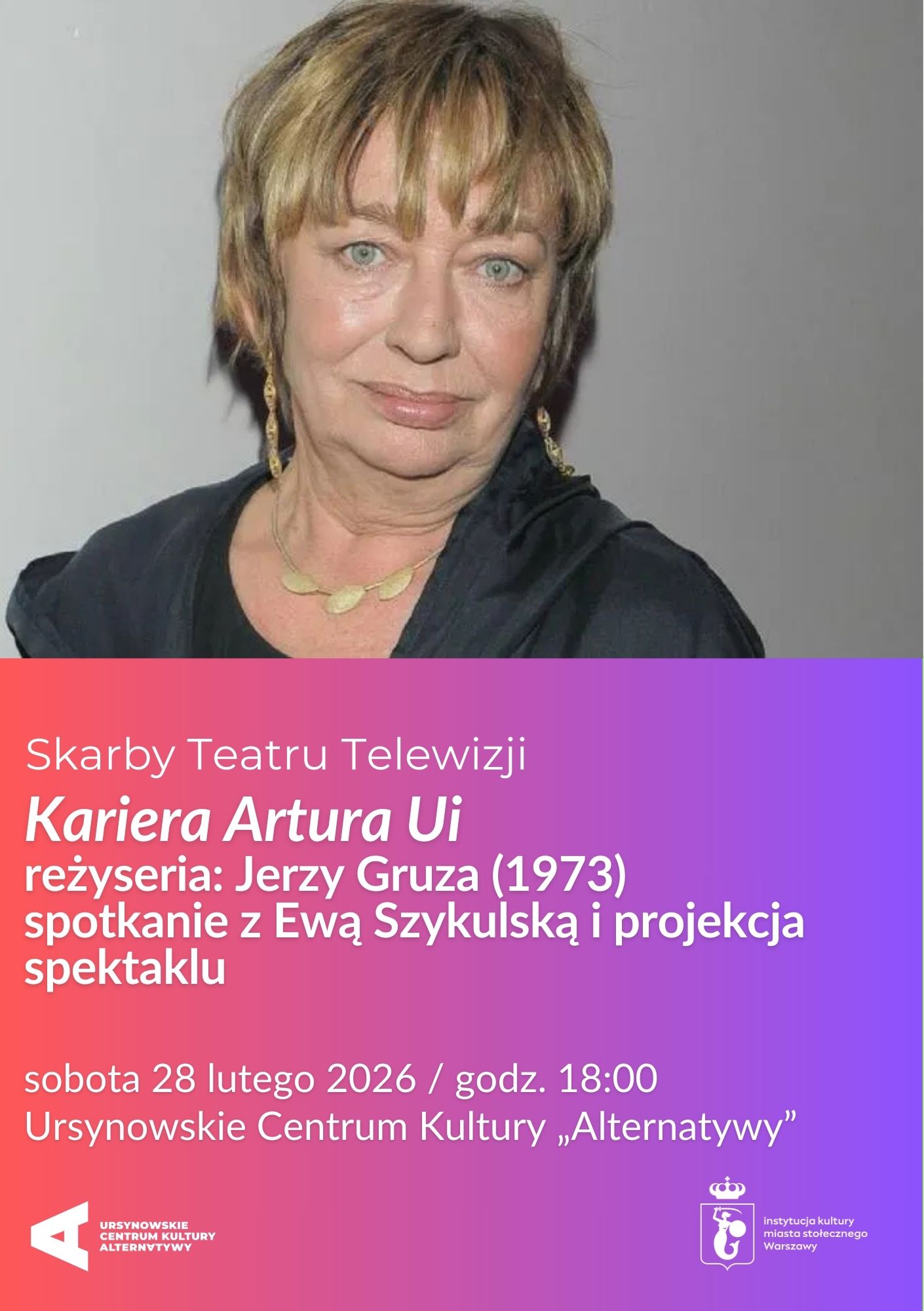 Recenzje i opinie: Skarby Teatru Telewizji | „Kariera Artura Ui” | reżyseria: Jerzy Gruza (1973) | spotkanie z Ewą Szykulską i projekcja spektaklu
