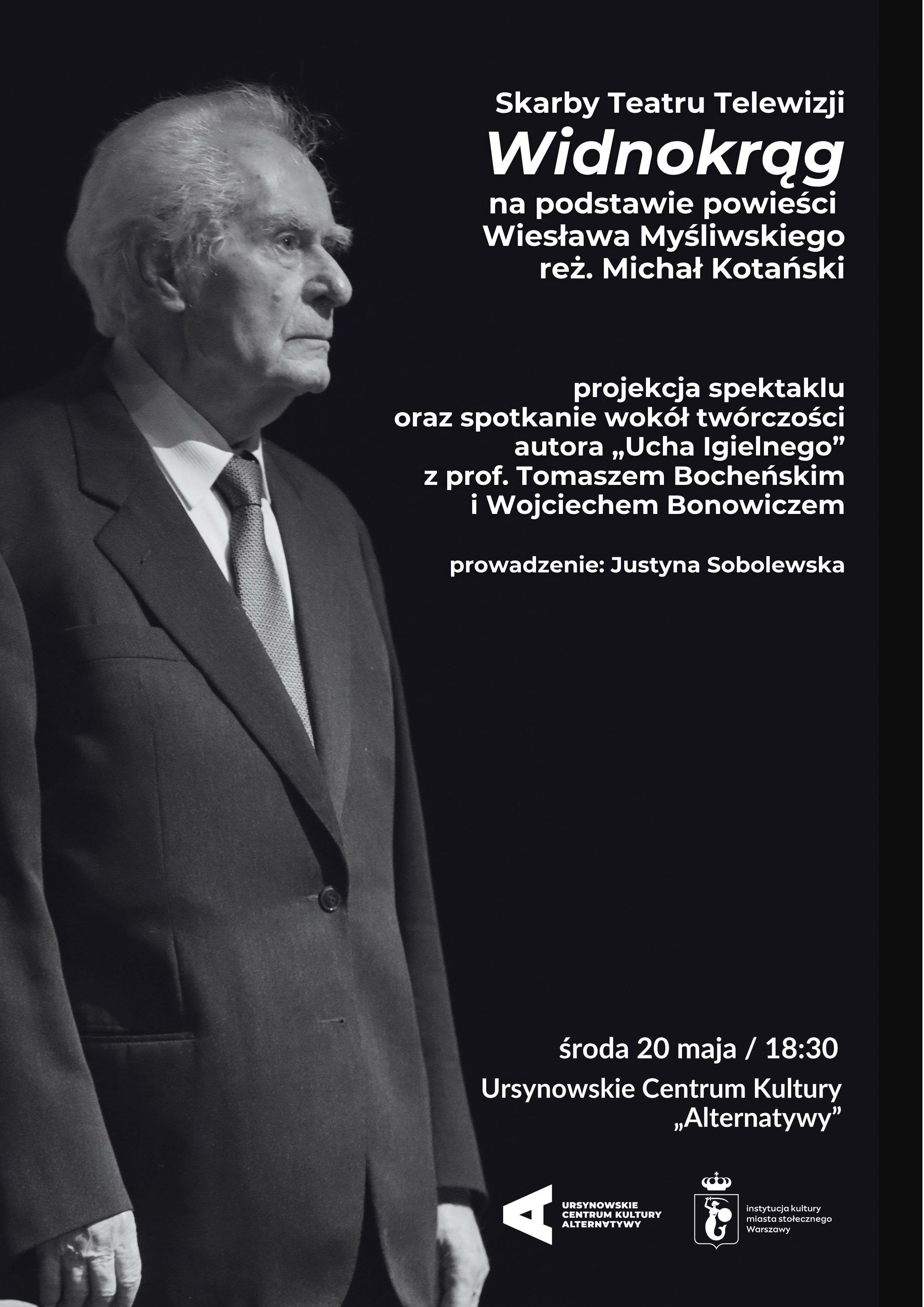 Wyjątkowy wieczór poświęcony twórczości Wiesława Myśliwskiego, będący zarazem poruszającym upamiętnieniem niedawno zmarłego pisarza. Spotkanie stanie się okazją do wspólnego powrotu do jego książek, refleksji nad ich znaczeniem oraz do podzielenia się osobistymi wspomnieniami i interpretacjami. Nasze zaproszenie do rozmowy o dorobku autora „Ucha Igielnego”, „Traktatu o łuskaniu fasoli” i innych wybitnych dzieł przyjęli znamienici goście: prof. Tomasz Bocheński (literaturoznawca z Uniwersytetu Łódzkiego, autor wywiadu z pisarzem, opublikowanego w 2022 roku w książce „Myśliwski – Bocheński. Rozmowy istotne”) oraz Wojciech Bonowicz (krakowski poeta i felietonista „Tygodnika Powszechnego”, przyjaciel Wiesława Myśliwskiego). Dyskusję poprowadzi krytyczka literacka i dziennikarka tygodnika „Polityka” Justyna Sobolewska, która zadba o to, by wieczór miał charakter zarówno refleksyjny, jak i osobisty. Po spotkaniu zapraszamy na projekcję spektaklu Teatru im. Stefana Żeromskiego w Kielcach w reżyserii Michała Kotańskiego na podstawie arcydzieła Wiesława Myśliwskiego „Widnokrąg”, które przyniosło mu Nagrodę Literacką „Nike” (1997). W swojej mistrzowskiej książce pisarz opowiedział o prowincjonalnym świecie, na które patrzy dorastający chłopiec. Powieść ta, zawierająca wiele motywów autobiograficznych, ukazuje świat, którego już nie ma, a który żyje wciąż w pamięci najstarszych pokoleń. Dla nich spektakl ten może stanowić powrót do miejsc dobrze znanych, a dla młodszych widzów lekcję poglądową o świecie, który przeminął. Nie tylko melancholia czyni tę rzeczywistość magiczną i pełnowymiarową – o uniwersalnym i niezwykle przejmującym przesłaniu tego dzieła przesądza uważność, z jaką Wiesław Myśliwski, a za nim Michał Kotański, przygląda się dojrzewaniu głównego bohatera, Piotrusia. Najpierw lata spędzone z rodzicami, potem konieczność pójścia własną drogą – te etapy w życiu każdego przesądzają o dalszym losie.