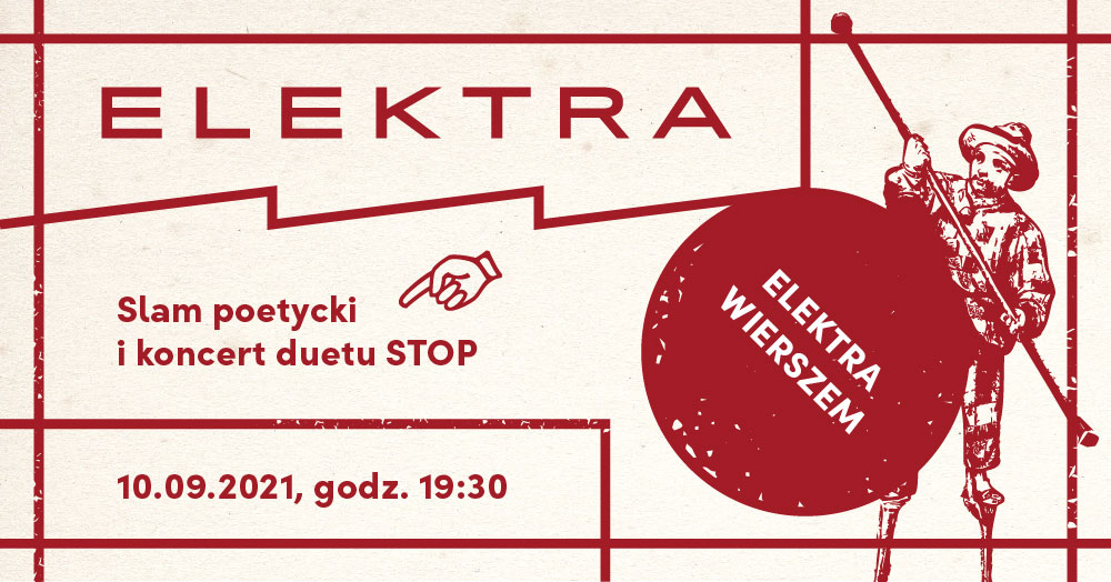 Wrześniowy Slam poetycki będzie pierwszym z cyklu Elektra Wierszem. Slamowi towarzyszyć będzie koncert duetu STOP.