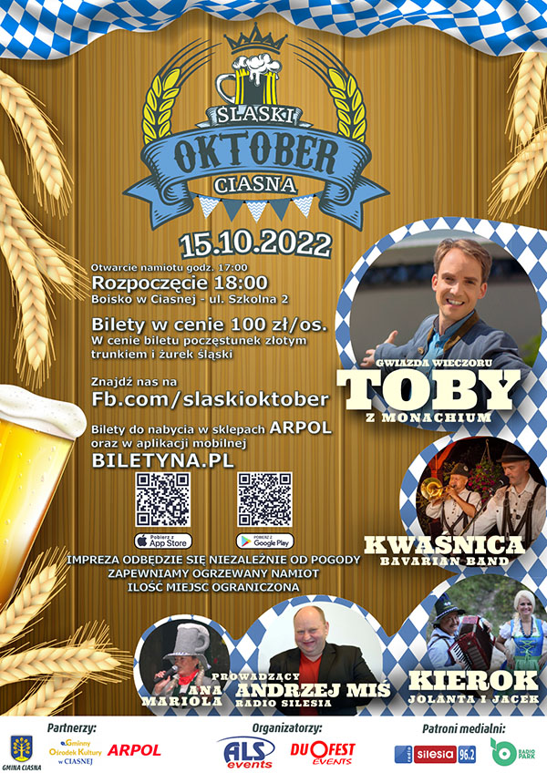 Impreza w stylu niemieckiego oktoberfest, gwiazda wieczoru Toby z Monachium. Na scenie również Kwasnica Bavarian Band, Jacek i Jolanta Kierok, prowadzący imprezę Andrzej Miś i Ana Mariola.