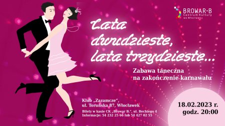 W ostatnią sobotę karnawału zapraszamy do Klubu Zazamcze na zabawę taneczną- tradycyjnego "Śledzika". Tym razem przeniesiemy się do lat dwudziestych i trzydziestych minionego wieku.