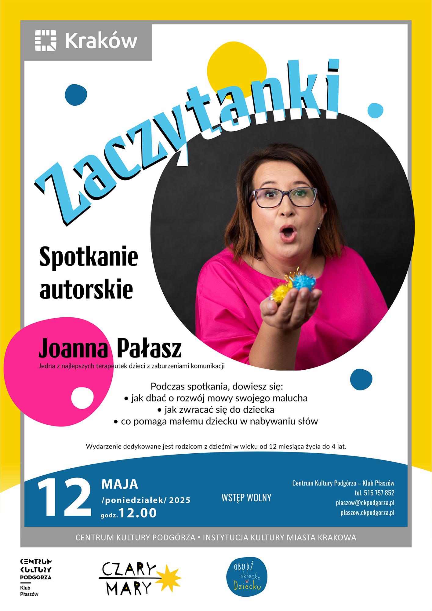 Zapraszamy na spotkanie z Joanną Pałasz - jedną z najlepszych terapeutek dzieci z zaburzeniami komunikacji w Polsce. Wydarzenie dedykowane jest rodzicom z dziećmi w wieku od 12 miesiąca życia do 4 lat.