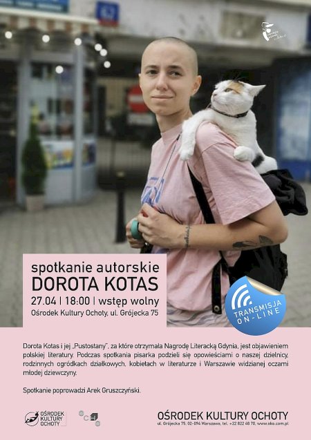 „Pustostany” Doroty Kotas, za które pisarka otrzymała Nagrodę Literacką Gdynia, są objawieniem polskiej literatury. Jest to opis codziennego życia pewnej dziewczyny z kamienicy na Pradze. Opiekuje się ona psem, zakochuje się w dziewczynach, spotyka sąsiadów, robi zakupy na bazarze i… pracuje w kawiarni, która chyba mieści się na Ochocie. W rozmowie z Arkiem Gruszczyńskim Dorota Kotas podzieli się opowieściami o naszej dzielnicy, rodzinnych ogródkach działkowych, kobietach w literaturze i Warszawie widzianej oczami młodej dziewczyny.