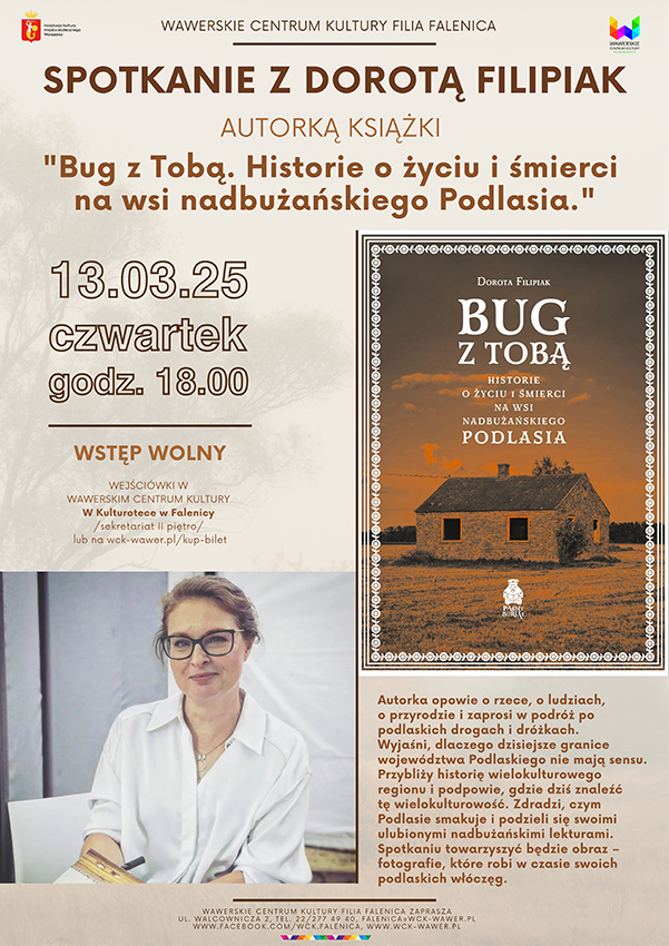 Recenzje i opinie: Spotkanie z Dorotą Filipiak autorką książki ""Bug z Tobą. Historie o życiu i śmierci na wsi nadbużańskiego Podlasia" w WCK Falenica