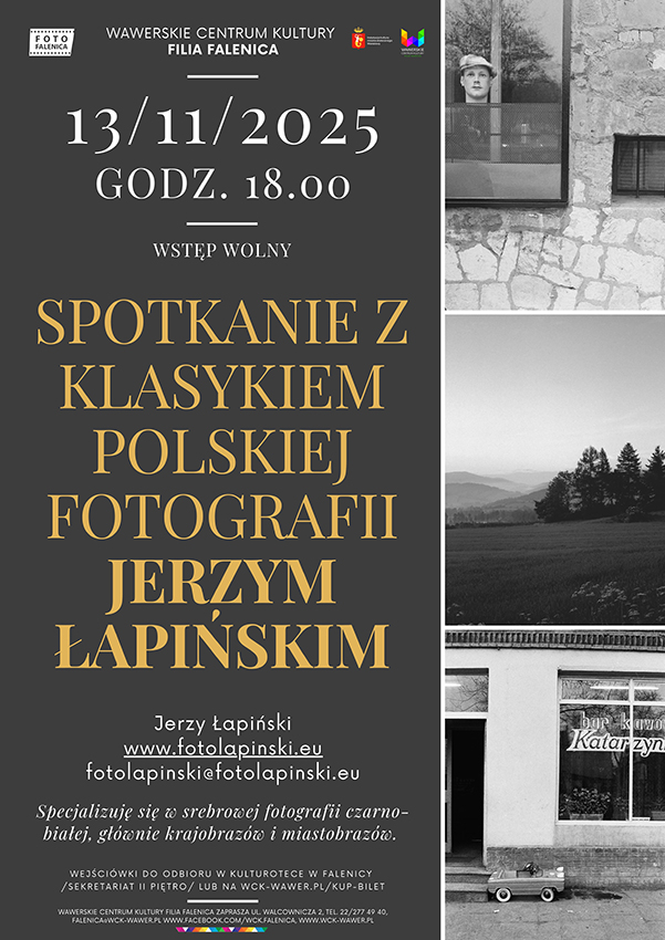 Serdecznie zapraszamy na spotkanie z klasykiem polskiej fotografii Jerzym Łapińskim w ramach projektu "Spotkania ze sztuką - FotoFalenica".
