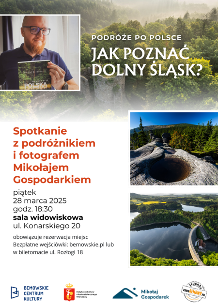 Zapraszamy na wyjątkowe spotkanie z podróżnikiem i fotografem Mikołajem Gospodarkiem, pasjonatem, który zabierze nas w fascynującą wyprawę po malowniczych zakątkach Dolnego Śląska. Czy kiedykolwiek zastanawialiście się, jakie tajemnice kryją tamtejsze zamki, górskie szlaki i historyczne miasta? Nasz gość odkryje przed nami mniej znane trasy, zachwycające krajobrazy i niezwykłe opowieści związane z tym regionem, uchwycone w obiektywie aparatu. Przyjdź, zobacz i posłuchaj… zainspiruj się do swojej własnej dolnośląskiej przygody! Nie przegap okazji, by dowiedzieć się, jak naprawdę odkryć Dolny Śląsk.