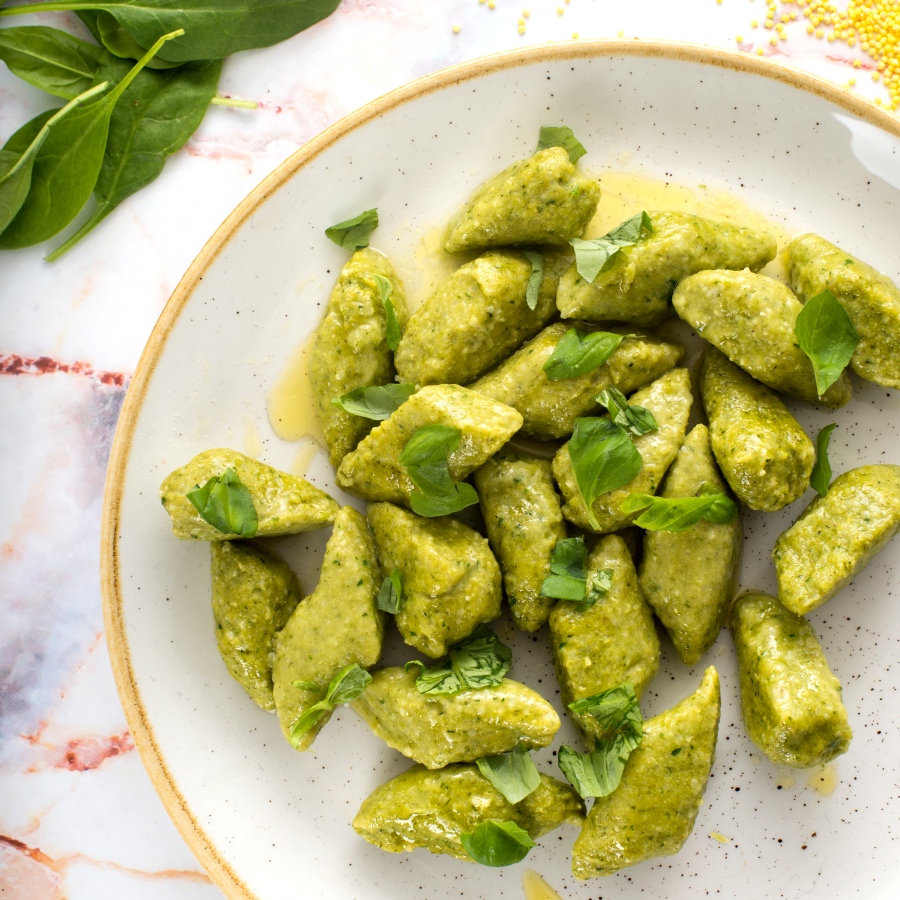 Zielone kopytka jaglane ze szpinakiem i wegańskim parmezanem