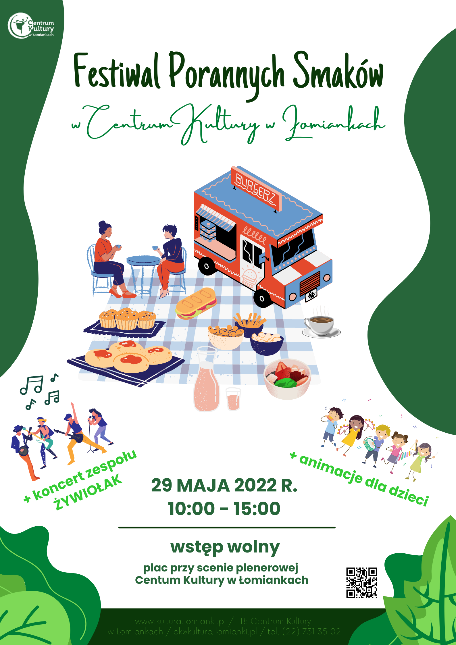 W ostatnią majową niedzielę (29.05) w godz. 10:00-15:00 organizujemy plenerowy Festiwal Porannych Smaków. Wydarzeniu towarzyszyć będą koncert zespołu folkowego oraz animacje dla dzieci.