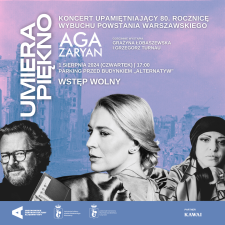 Ze sceny usłyszymy Agę Zaryan, której towarzyszyć będą Grażyna Łobaszewska i Grzegorz Turnau. Wybitna wokalista jazzowa wykona utwory ze swojego albumu Umiera piękno, który ukazał się z okazji obchodów 63. rocznicy wybuchu powstania warszawskiego. Na płycie znajduje się dziewięć utworów autorstwa Krystyny Krahelskiej, Józefa Żywiny, Anny Świrszczyńskiej, ks. Jana Twardowskiego, Miry Grelichowskiej i Elżbiety Szemplińskiej. Autorem muzyki i aranżerem ich wszystkich jest wieloletni partner artystyczny Agi Zaryan – Michał Tokaj. Niektóre piosenki zaśpiewa wspólne ze swoimi gośćmi – Grażyną Łobaszewską i Grzegorzem Turnauem, którzy muzycznie zinterpretują utwory nawiązujące tematycznie do wybuchu powstania warszawskiego.