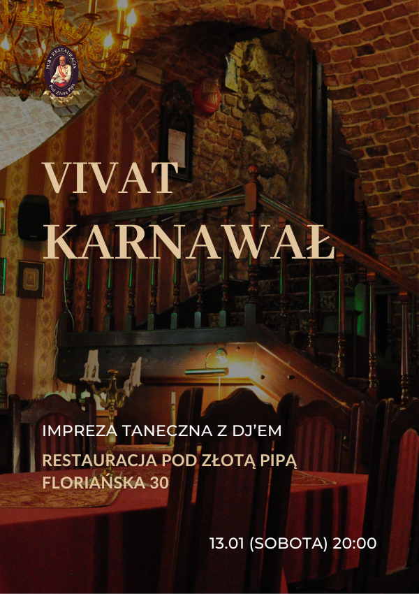 Vivat Karnawał to taneczna impreza z dj'em przy hitach lat 80,90 i 00! Podczas wydarzenia nie tylko serwujemy doskonałą muzykę, ale również wyśmienite dania - do wyboru aż 3 różnorodne opcje.