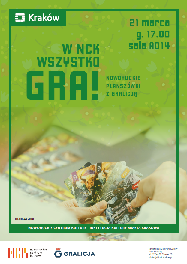 Wydarzenie organizowane przez Nowohuckie Centrum Kultury i Krakowskie Stowarzyszenie Miłośników Gier Planszowych Gralicja.