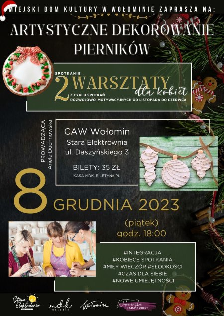ZAPRASZAMY NA WARSZTATAY DLA KOBIET Z ARTYSTYCZNEGO DEKOROWANIA PIERNIKÓW W CAW - STARA ELEKTROWNIA w Wołominie