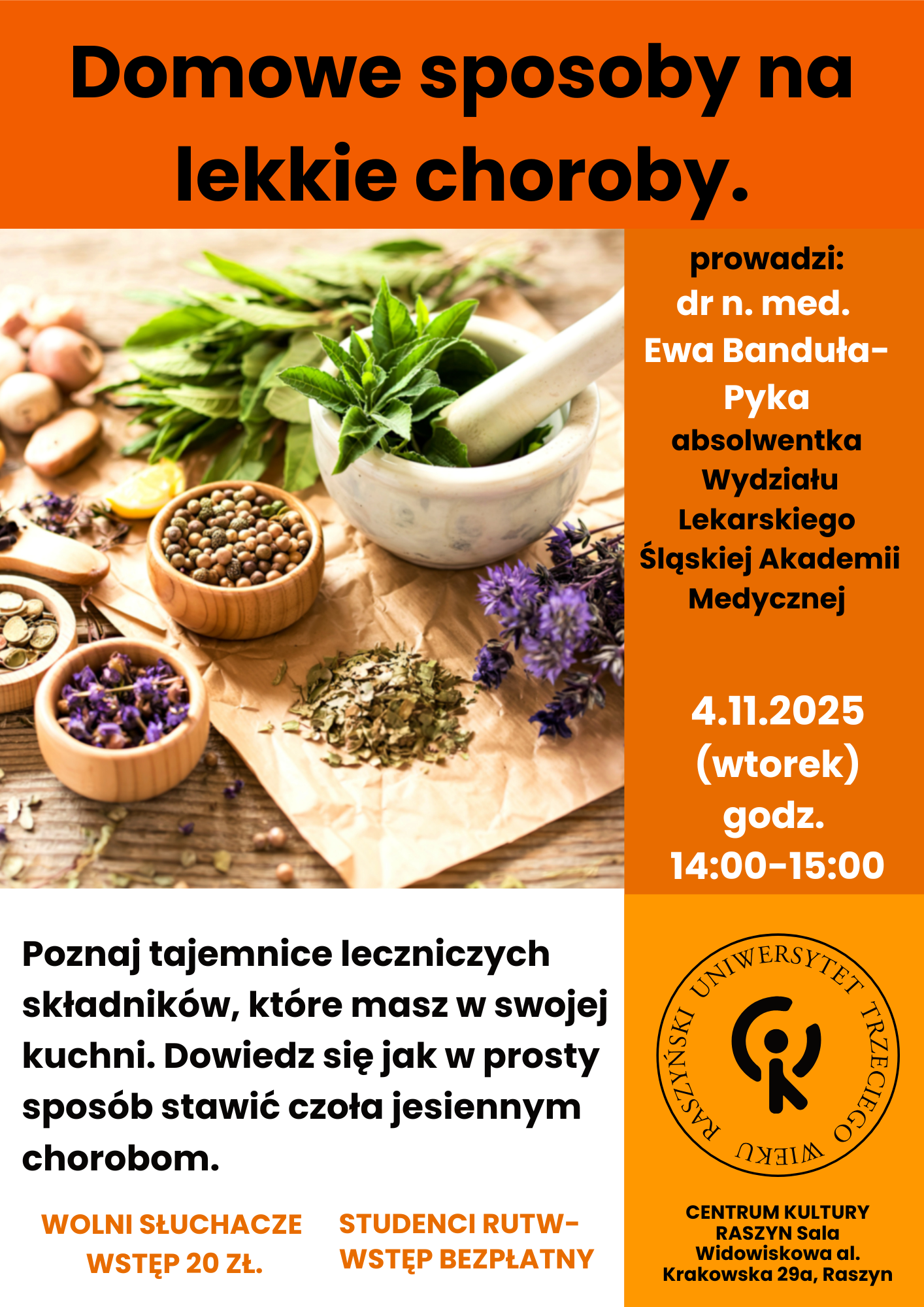 Temat: Domowe sposoby na lekkie choroby, CKR: Sala widowiskowa