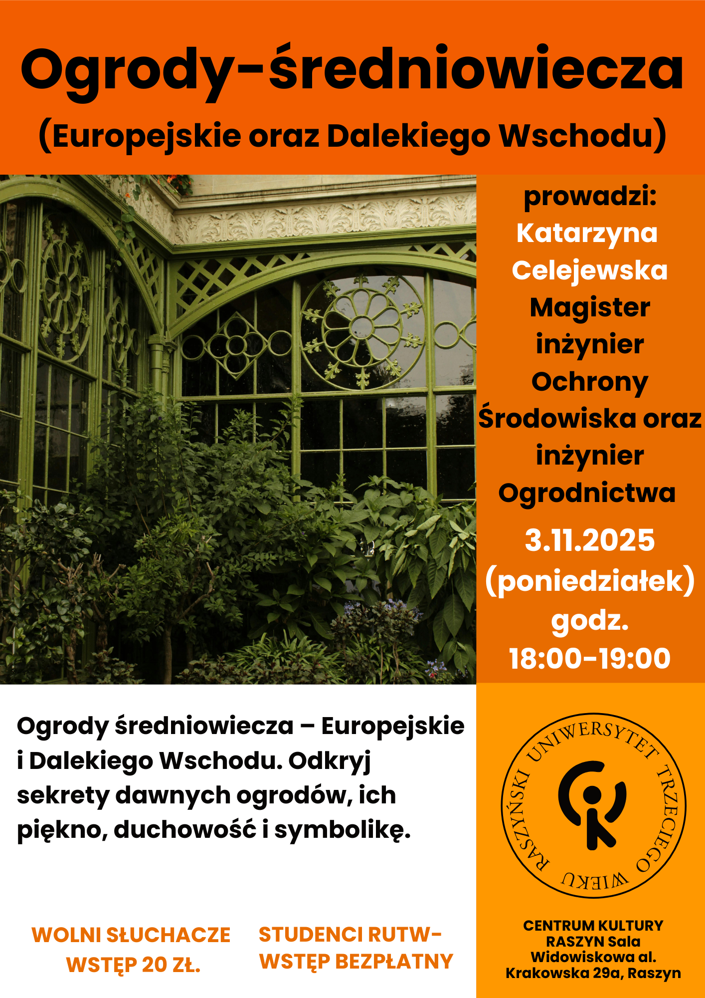 WYKŁAD RUTW: OGRODY prowadzi Katarzyna Celejewska