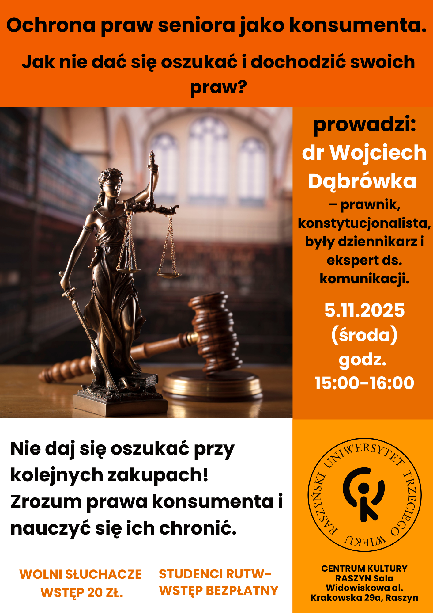 Temat: Ochrona praw seniora jako konsumenta – jak nie dać się oszukać i dochodzić swoich praw? CKR: sala widowiskowa