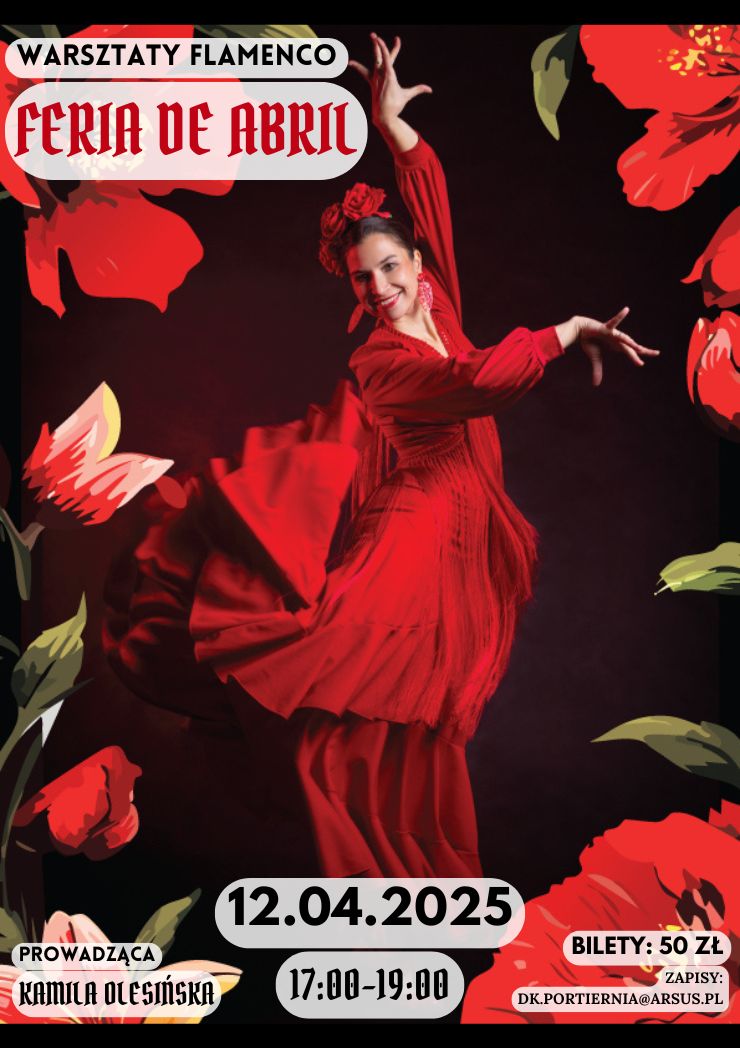 Co roku w kwietniu odbywa się w Sewilli wielkie, wiosenne święto - Feria de Abril. Na ulicach królują kwiaty, falbany i groszki kobiety i dziewczynki zakładają bowiem tradycyjne suknie trajes de flamenco. Panowie także ubierają się w odświętne stroje a częstym dodatkiem jest sombrero. Podczas Ferii ustawiana jest wielka, migocząca setkami lampek brama i rozstawiane są charakterystyczne, pasiaste namioty. Muzyka i tańce trwają od rana do wieczora i od wieczora do rana. Najczęściej wykonywanym tańcem jest wtedy Sevillanas. Postanowiliśmy ten barwny, tętniący życiem klimat przenieść z Sewilli wprost do Domku Kultury Portiernia. Poznamy kroki Sevillanas, którą można tańczyć z kastanietami lub wachlarzem, w parze, bądź w kole. Kroki, które poznasz podczas warsztatu możesz potem śmiało zatańczyć będąc w Hiszpanii.