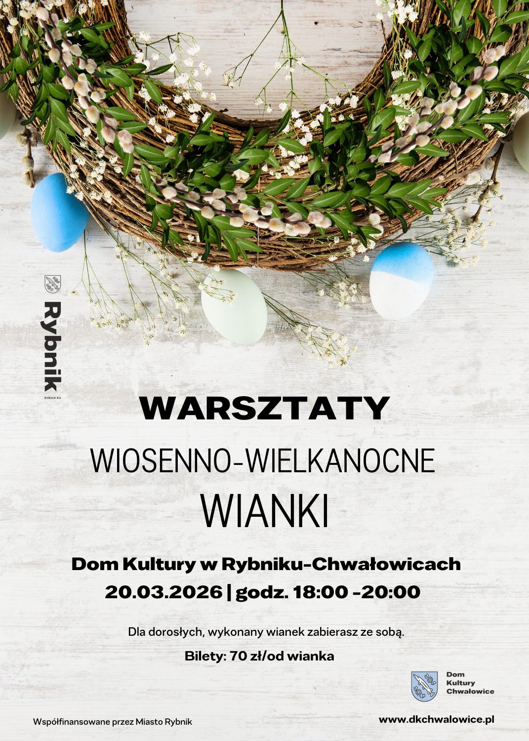 Dołącz do nas na pachnące wiosną warsztaty i stwórz własny, wiosenno-wielkanocny wianek, który stanie się wyjątkową ozdobą Twojego wnętrza. Gotową pracę oczywiście zabierasz ze sobą do domu!