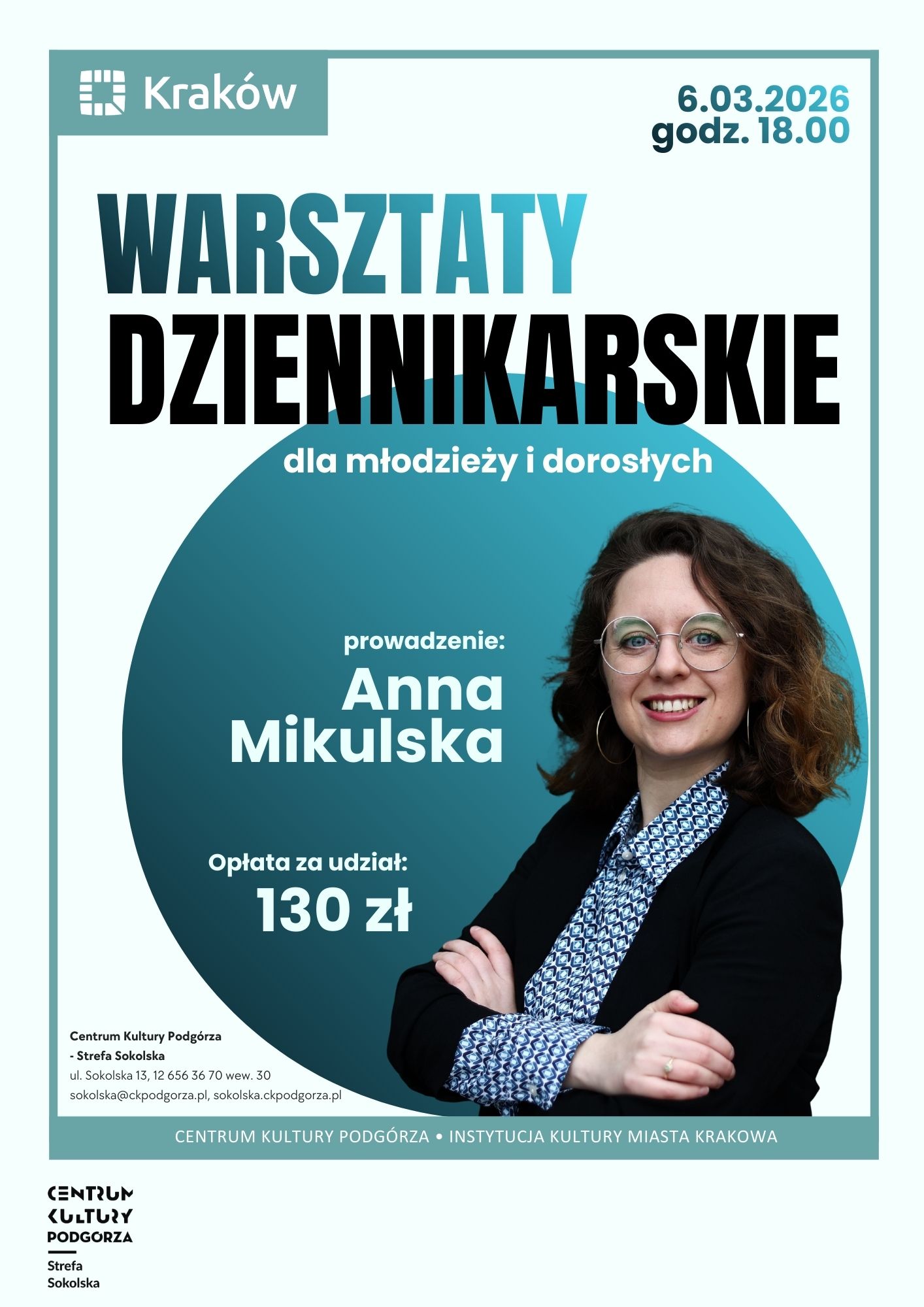 Warsztaty dla osób, które chcą rozpocząć swoją drogę dziennikarską lub rozwinąć umiejętności pisarskie. Uczestnicy poznają podstawy pracy z tematem i pomysłem, dowiedzą się, jak przygotować i dopracować tekst. Prowadząca podzieli się doświadczeniami z pracy reporterskiej w Polsce i za granicą oraz odpowie na pytania uczestników. Po zajęciach możliwość bezpłatnych, indywidualnych mailowych konsultacji merytorycznych dotyczących konspektu artykułu.