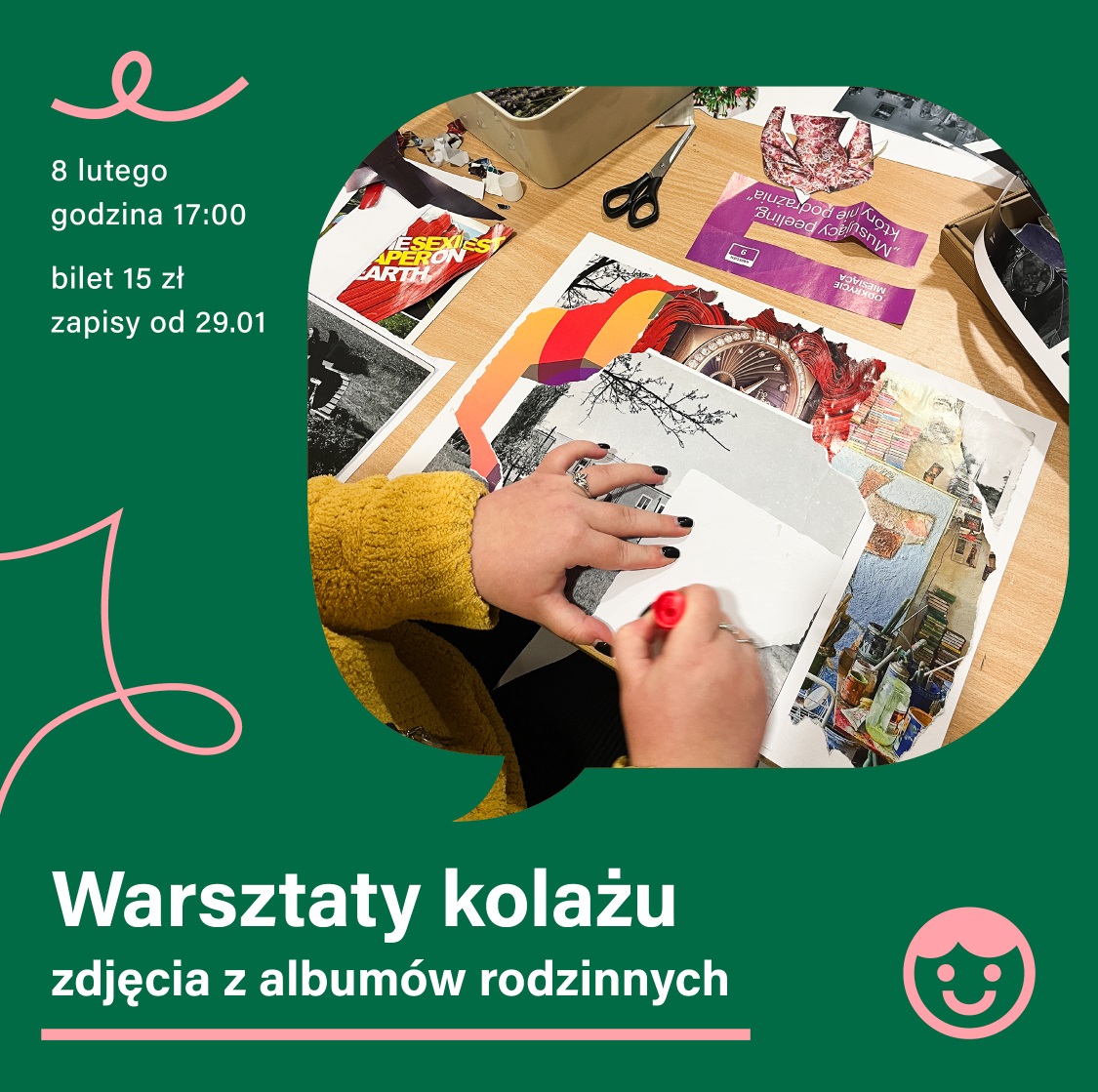 Zapraszamy na kolejne warsztaty z robienia kolaży z Ewą Ziembicką. Tym razem tematem warsztatów będą zdjęcia z albumów rodzinnych. Zachęcamy do przyniesienia własnych zdjęć – zdjęć ślubnych, portretów zakochanych lub innych, które szczególnie lubicie. My je zeskanujemy, dokonamy retuszu, wydrukujemy, następnie pod okiem Ewy Ziembickiej będziemy pracować nad autorskimi kolażami. Zapewniamy ciekawe papiery o różnych fakturach, kolorowe magazyny, gazety i zdjęcia.