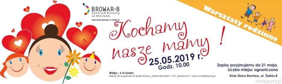 Nasze wspaniałe mamy zawsze chętnie i licznie uczestniczą w organizowanych w „Starej Remizie” Warsztatach Rodzinnych. Właśnie dlatego, w przeddzień ich święta zapraszamy do nas dzieci, rodziców i dziadków na spotkanie pod tytułem „Kochamy nasze mamy”.