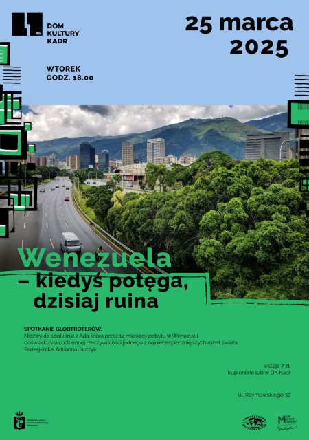 W Radio Czwórce można było wtedy posłuchać jej krótkich audycji z Caracas, a za całą swoją działalność została nominowana w Plebiscycie 'Travelery’ National Geographic w kategorii 'Blogger Roku’. Podczas prelekcji będziemy mogli posłuchać, jak wyglądają realia kraju, który niegdyś był potęgą, a teraz jest zrujnowany przez kryzys i politykę.