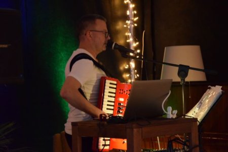 Wieczorek taneczny w Klubie Kultury Seniora. Impreze prowadzi DJ Akordeonista Darek